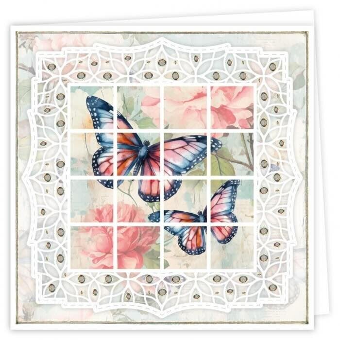 De set bevat alle benodigdheden voor het creëren van 3 vierkante kaarten