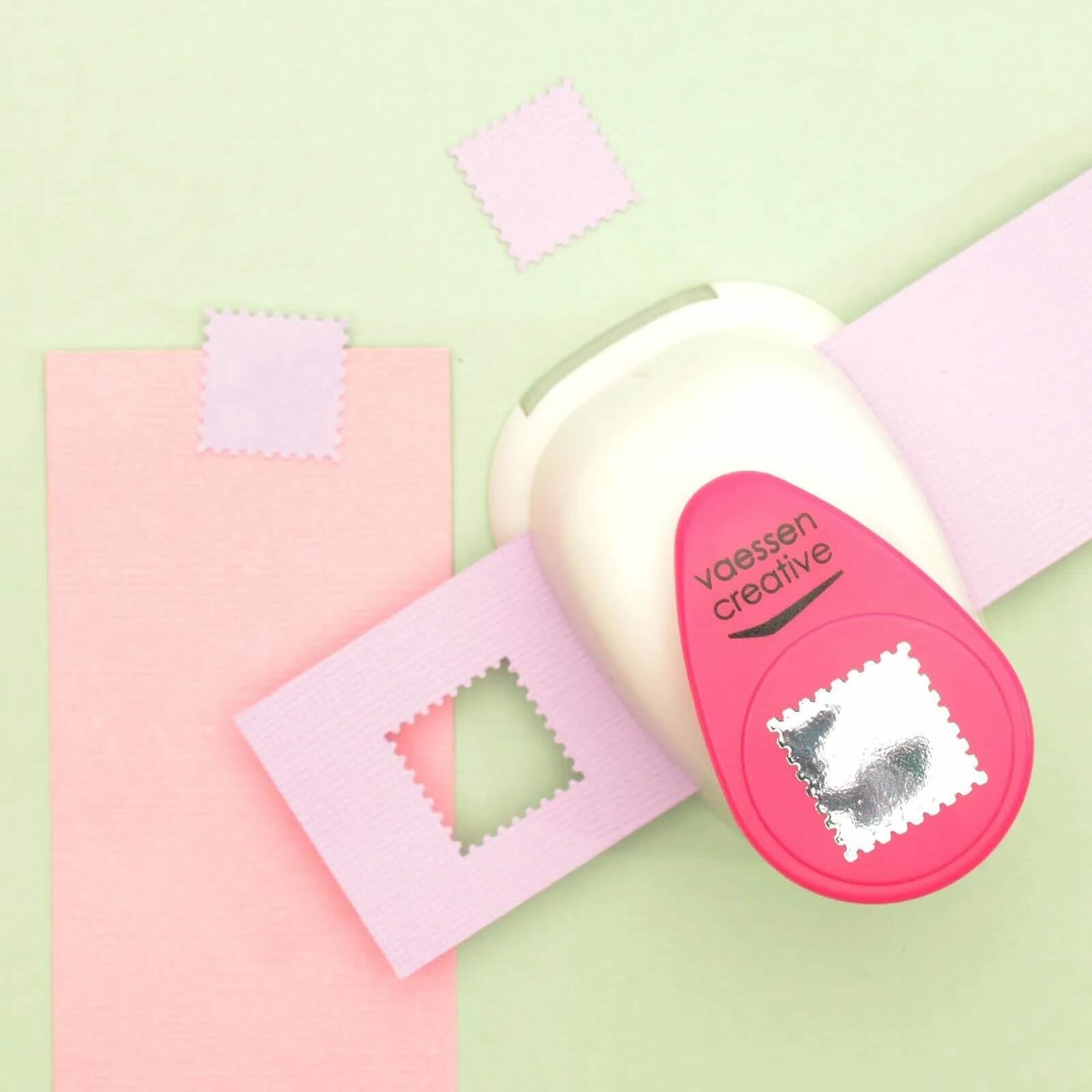 Met deze grote figuurpons van Vaessen Creative pons je in één handbeweging een postzegel uit papier, cardstock, foto’s, kurk, dun foam en meer.