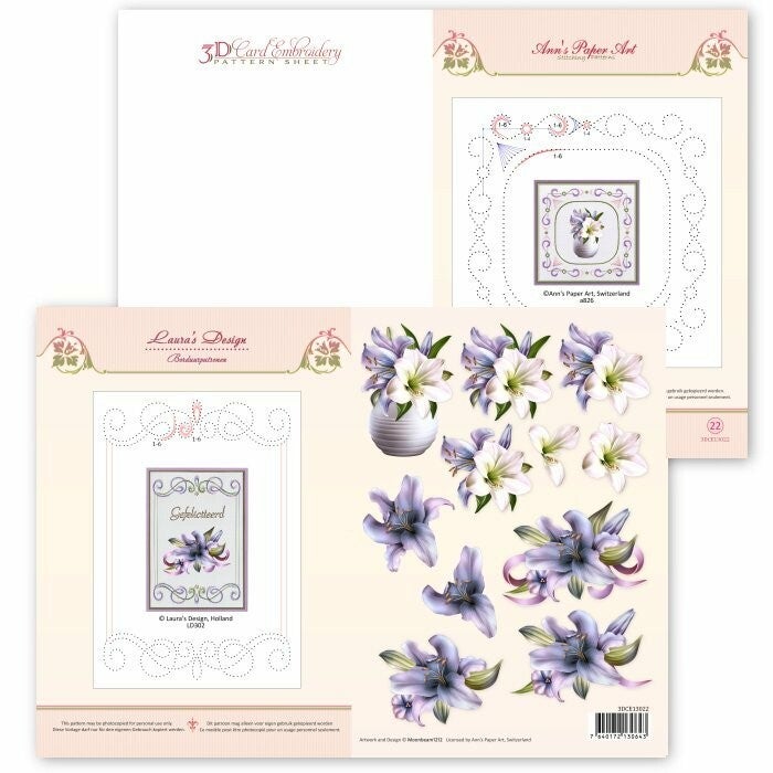 3D card embroidery pattern sheet